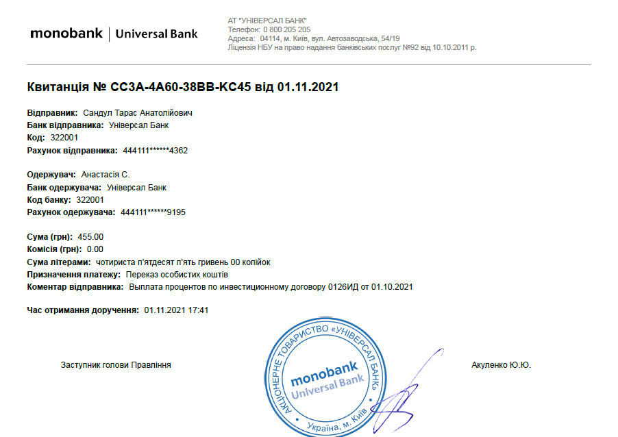 Сегодня получила выплату 🙂 Очень даже ничего с вложенных 2000 грн. в октябре.